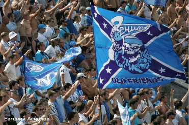 Россия, Санкт-Петербург. Чемпионат России по футболу. Матч между ФК"Зенит" и ФК"Динамо" (Москва). На снимке: болельщики ФК"Зенит" на трибунах стадиона "Петровский".