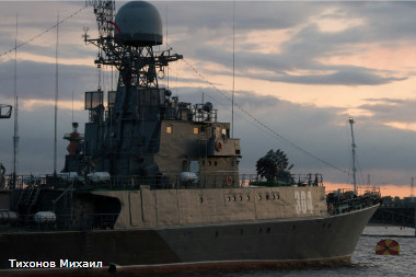 Малый противолодочный корабль "Уренгой" Дважды Краснознаменного Балтийского флота на рейде в устье реки Нева в центре Петербурга.