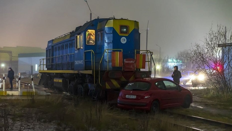 В Воркуте произошла авария на нерегулируемом железнодорожном переезде: легковой автомобиль Peugeot врезался в тепловоз.