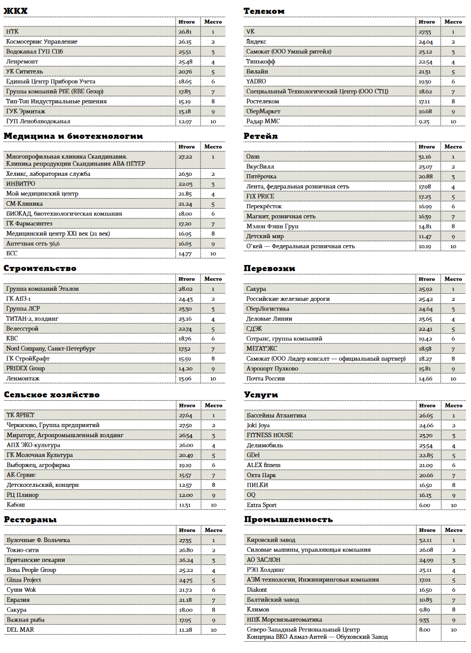 Оценка проводилась в 10 номинациях: ЖКХ, медицина и биотехнологии, строительство, промышленность, сельское хозяйство, общепит, телеком, ретейл, грузоперевозки, услуги. В лонглист рейтинга попали отраслевые лидеры по публикации вакансий. Выборка была сделана на основе аналитики сервиса "Люди в цифрах" HH.