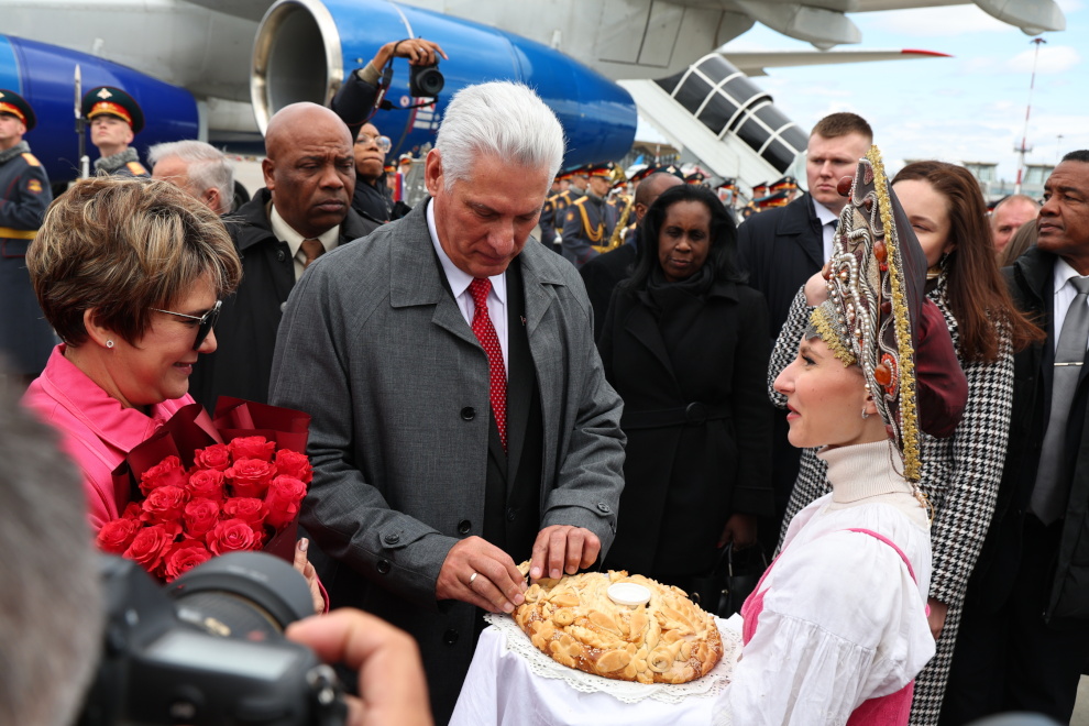 Губернатор Петербурга Александр Беглов встретил в аэропорту "Пулково" президента Республики Куба Мигеля Диас-Канеля Бермудеса, который прибыл в Россию для участия в праздновании 80-й годовщины Великой Победы, сообщили в администрации города.