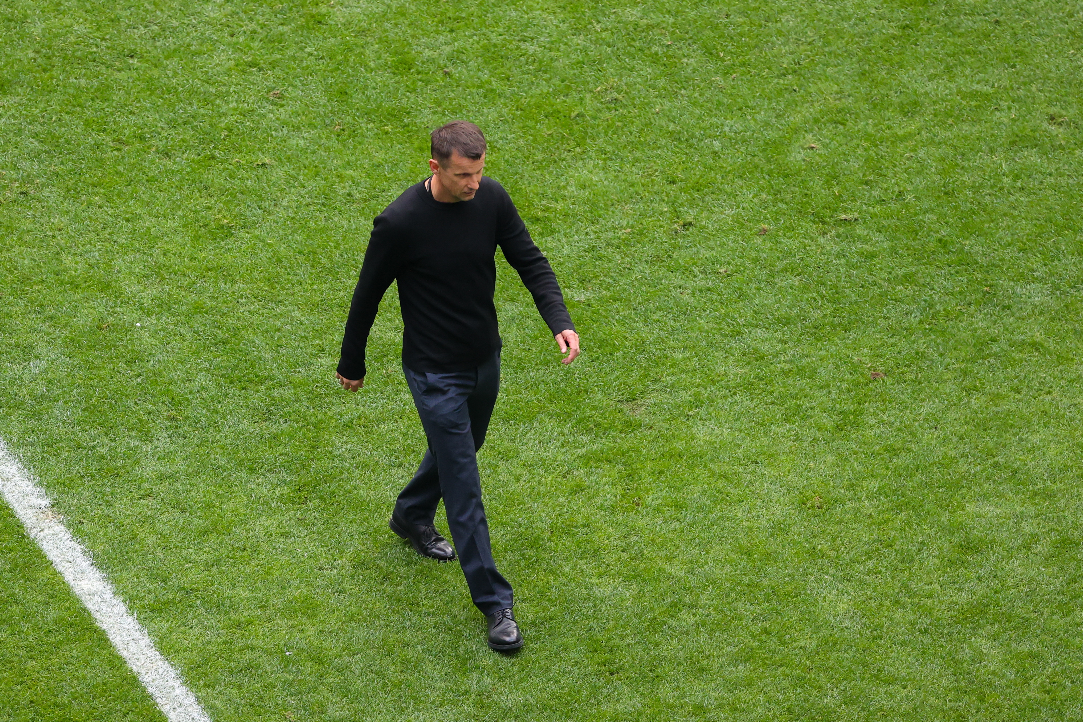 Главный тренер "Зенита" Сергей Семак на футбольном поле во время матча с "Ахматом" 24 мая 2025 года.
