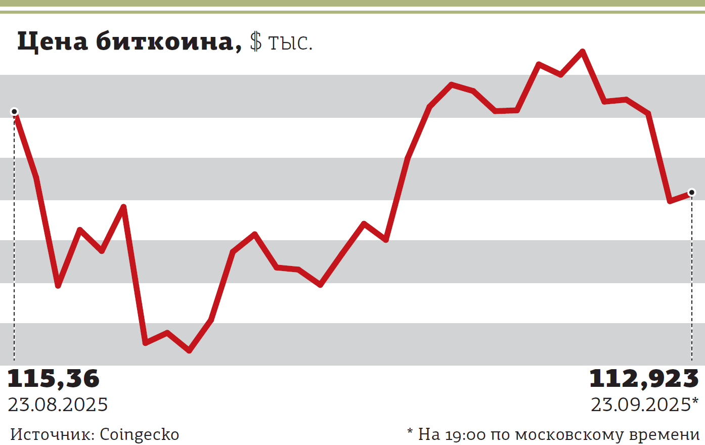 "Сейчас ключевой уровень сопротивления — $115 тыс.: его преодоление необходимо для восстановления доверия и возобновления восходящего движения, — полагает он. — Без закрытия дневной свечи выше сохраняется риск падения до $110 тыс. Фокус внимания участников рынка направлен на выступлении Пауэлла 23 сентября и данных PCE (индекс цен расходов на личное потребление в США. — Ред.): они определят тон рынка".