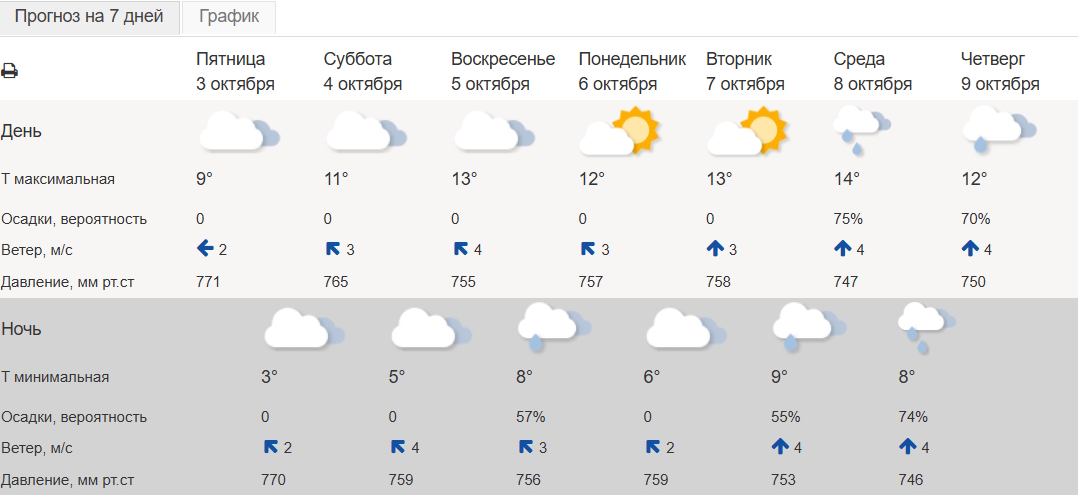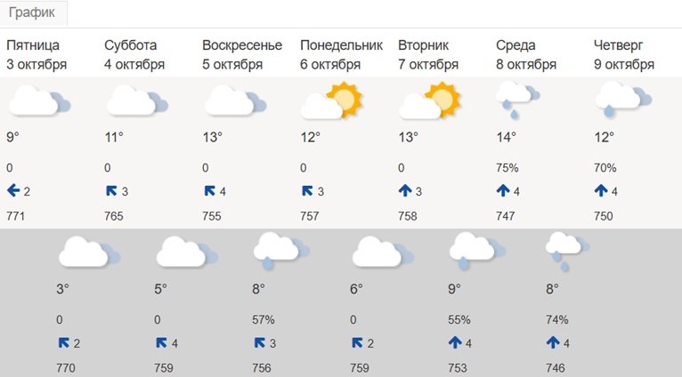 Днём воздух прогреется: вместе с циклонами придёт и потепление. В дневные часы даже при облачности ожидается +10…+14 градусов тепла. Вероятнее всего, отметил Колесов, такой фон сохранится в течение всей следующей недели.