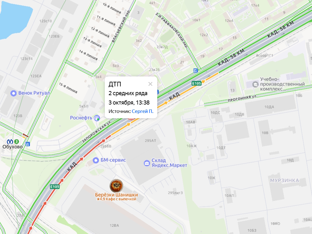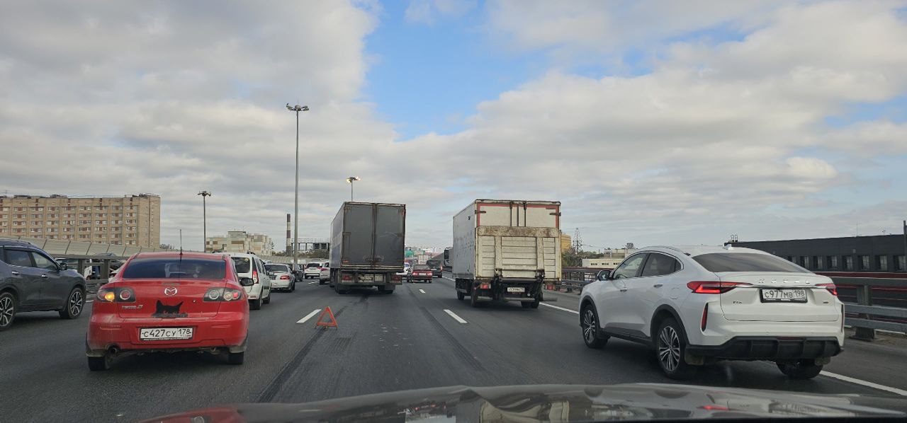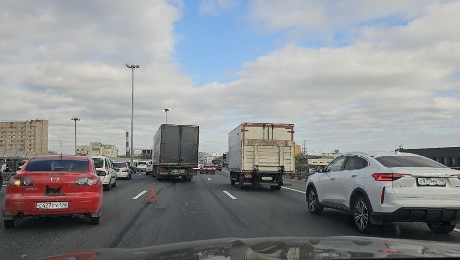ДТП на внешнем кольце КАД перед съездом на проспект Обуховской Обороны затруднило движение в сторону вантового моста, сообщили очевидцы.
