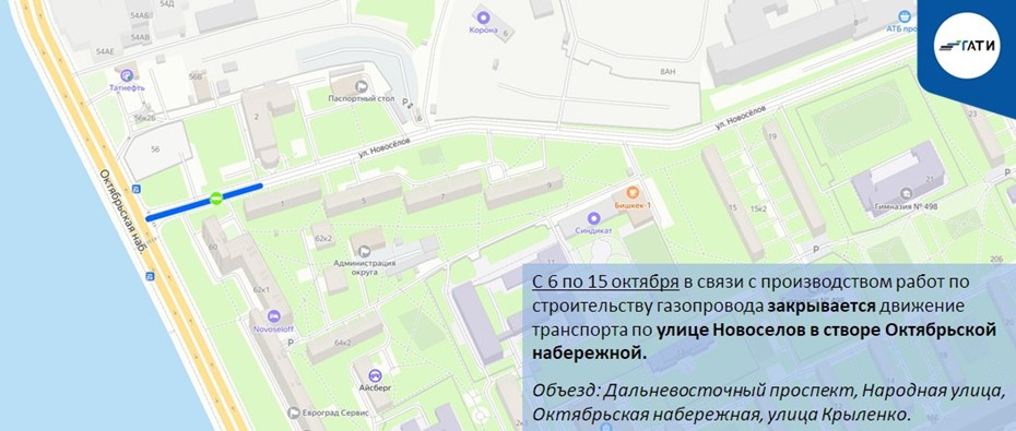 Помимо этого, с 7 октября по 22 декабря заблокируют проезд по Приморской улице в створе одноимённого шоссе.