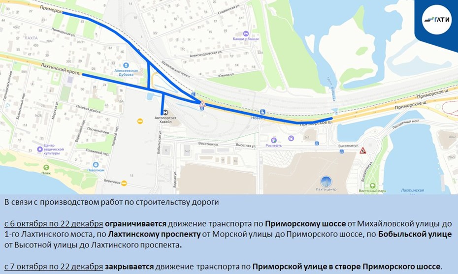 Ограничения также коснутся Лахтинского проспекта от Морской улицы до Приморского шоссе и Бобыльской улицы от Высотной улицы до Лахтинского проспекта.