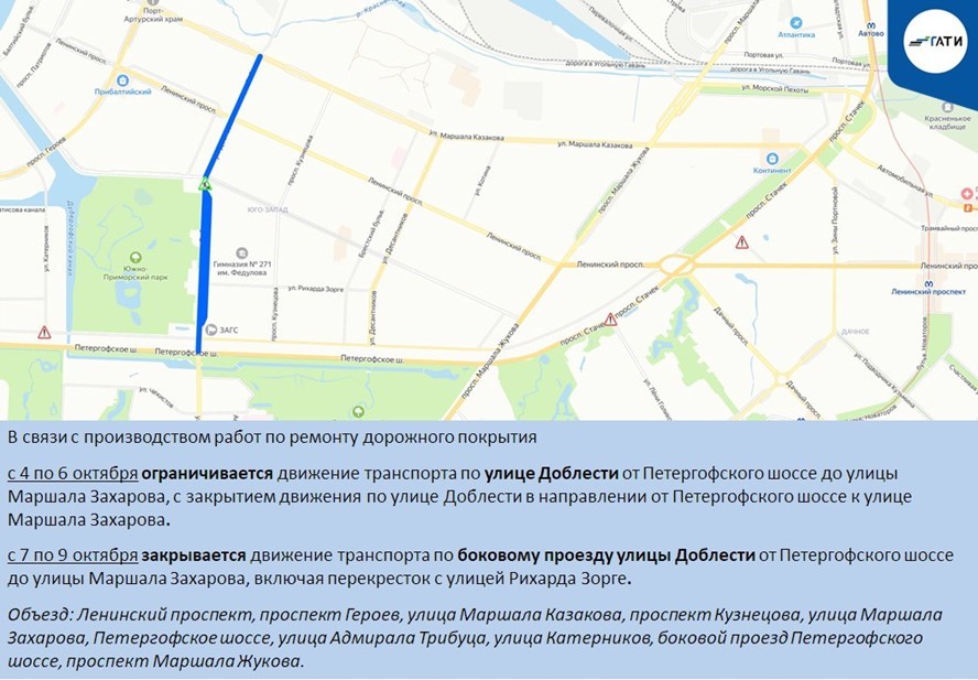 В Петербурге вводятся новые ограничения движения, сообщили в Государственной административной технической инспекции (ГАТИ).
