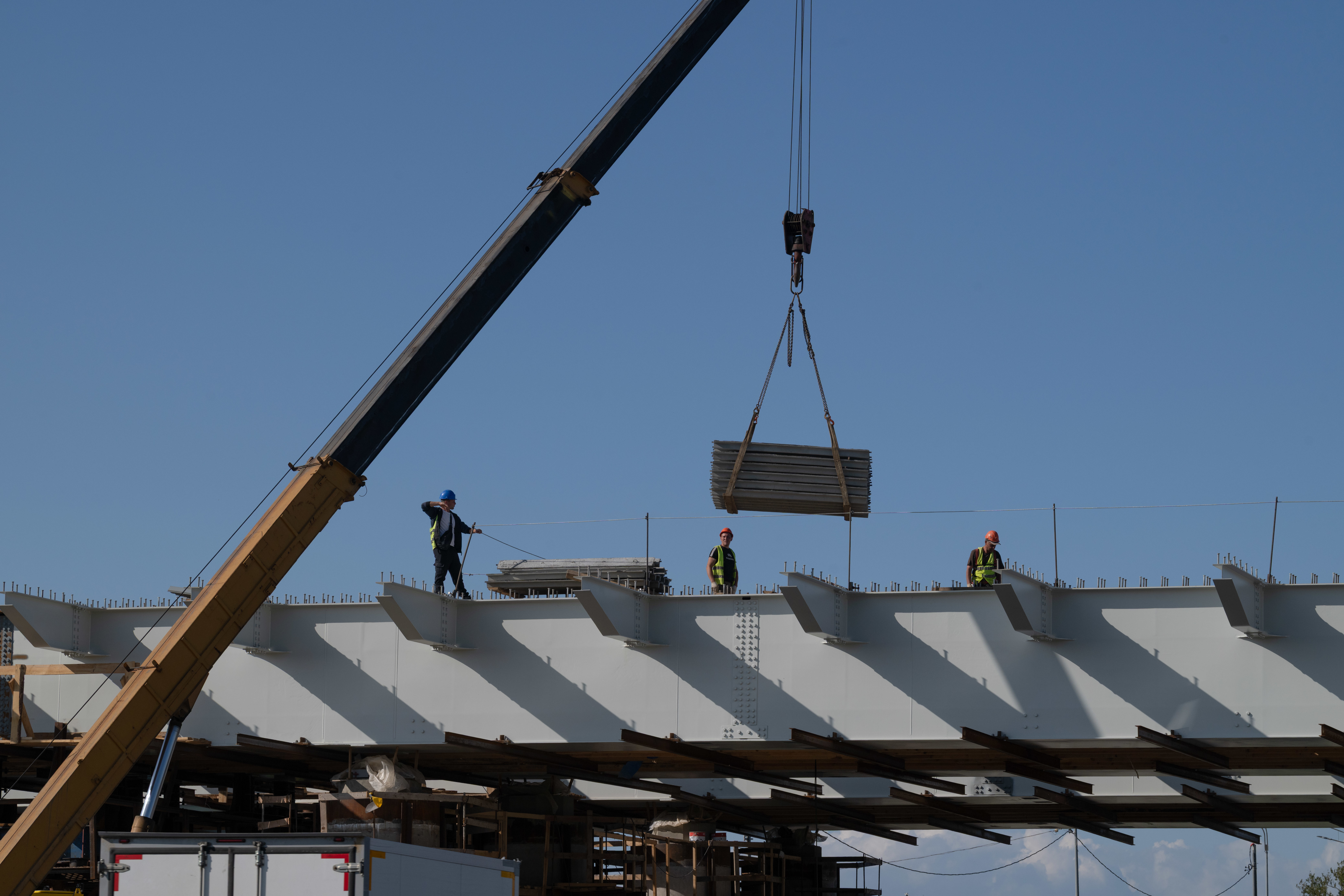 "Смонтированы металлоконструкции пролётных строений общей массой более 2 тыс. тонн на двух путепроводах через Пулковское шоссе, а на третьем — через М-11 — смонтированы все 18 железобетонных балок", — рассказал Марат Хуснуллин.