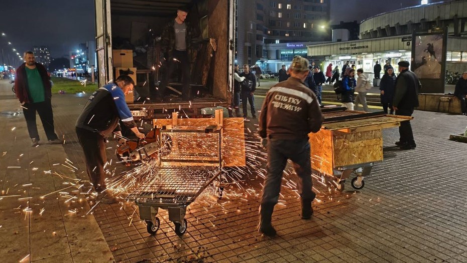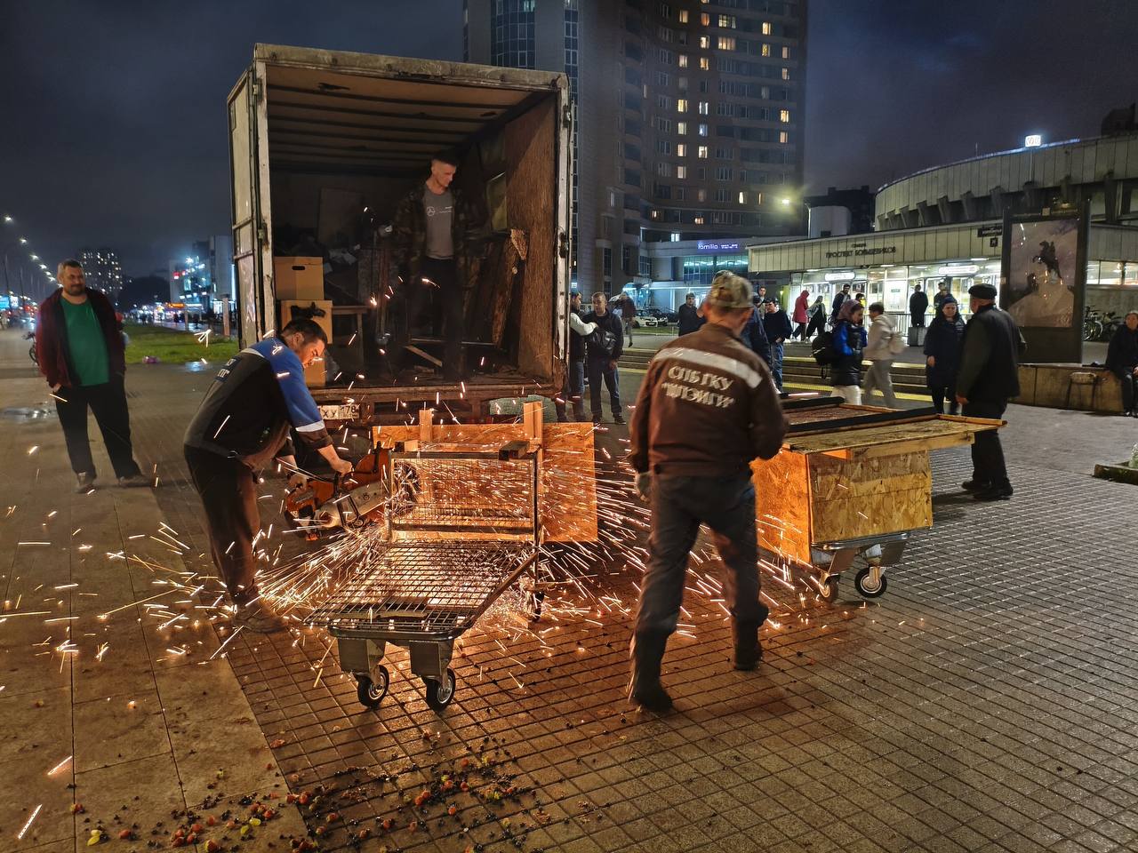 Недавно у станции метро "Комендантский проспект" был демонтирован незаконно установленный киоск. В процессе демонтажа сотрудники ККИ также изъяли 240 кг плодоовощной продукции.