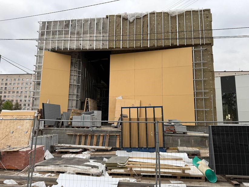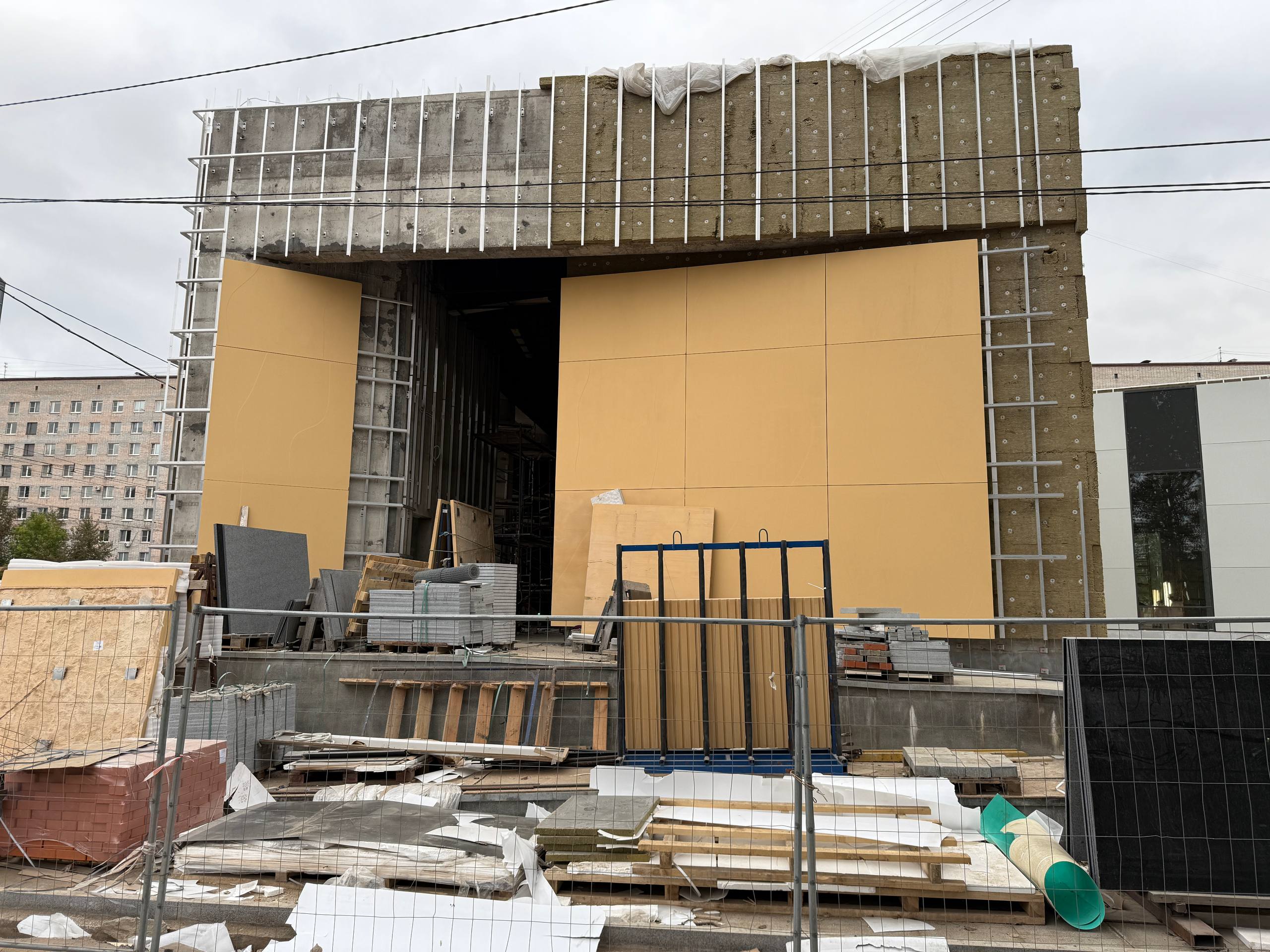 В настоящее время на станции продолжаются работы по установке вентилируемого фасада.