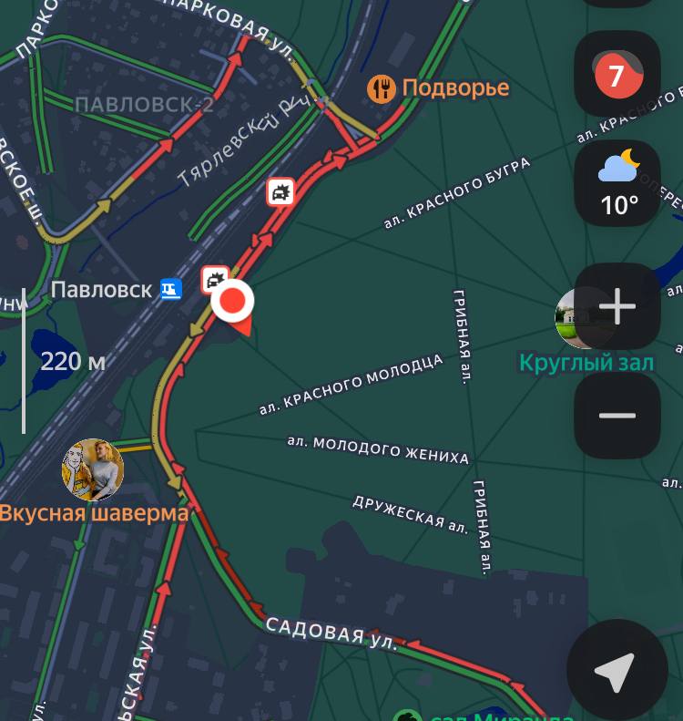К 19:00 мск пробки на Садовой улице и Фильтровском шоссе снизились до 6 баллов. Автобусы из Павловска в Пушкин и Петербург продолжили движение.