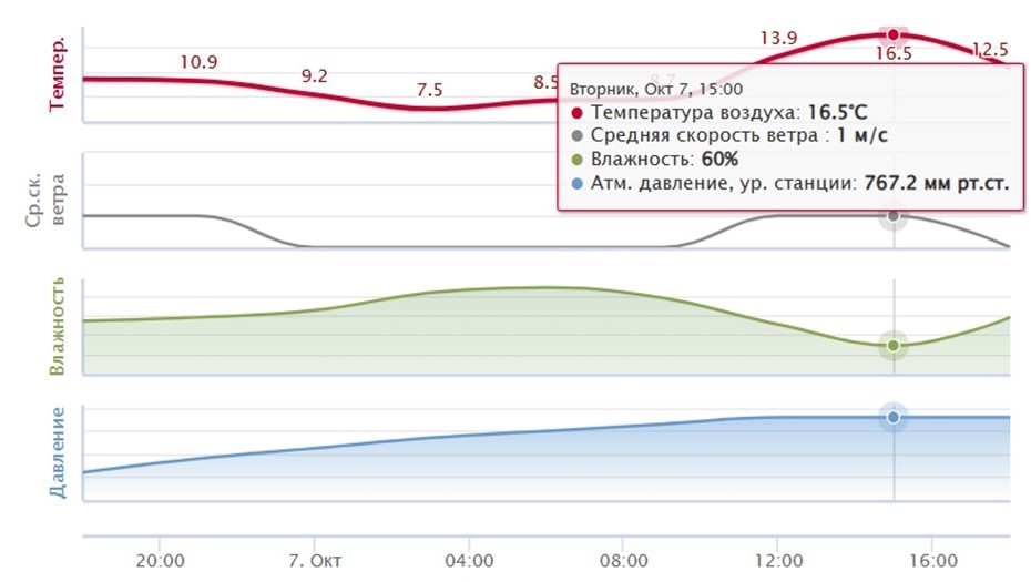 Однако уже с 8 октября в городе температура будет постепенно падать. В среду ещё ожидается небольшое потепление до +13…+15, а к четвергу-пятнице на фоне дождей прогнозируется до +10…+11 градусов.