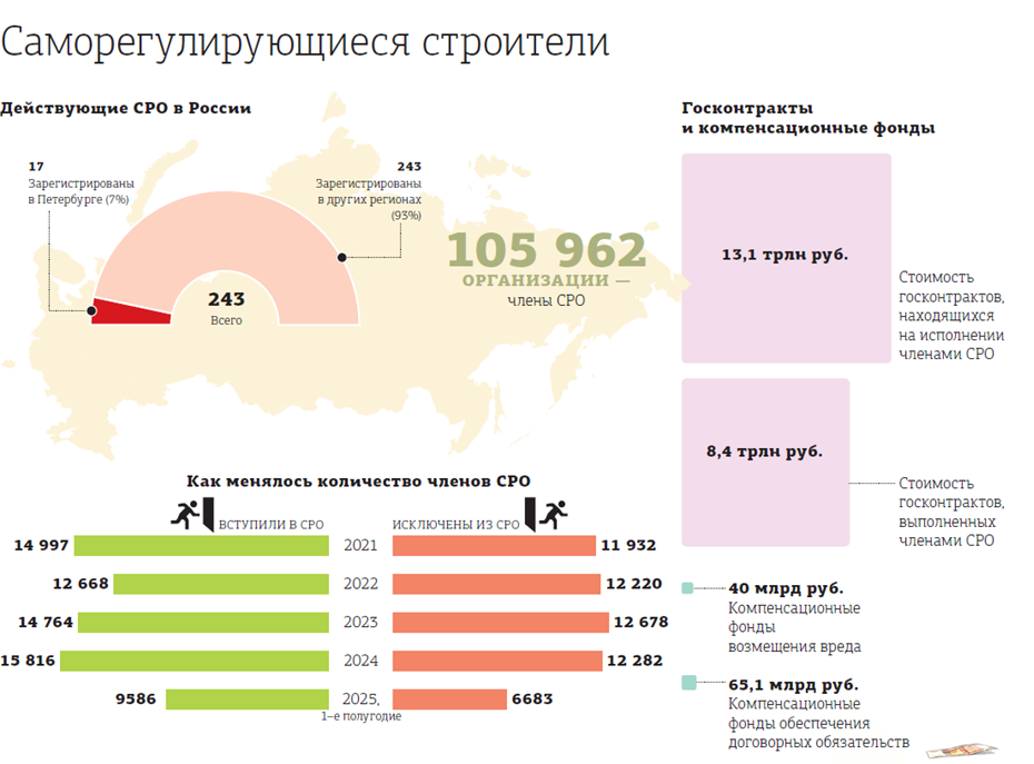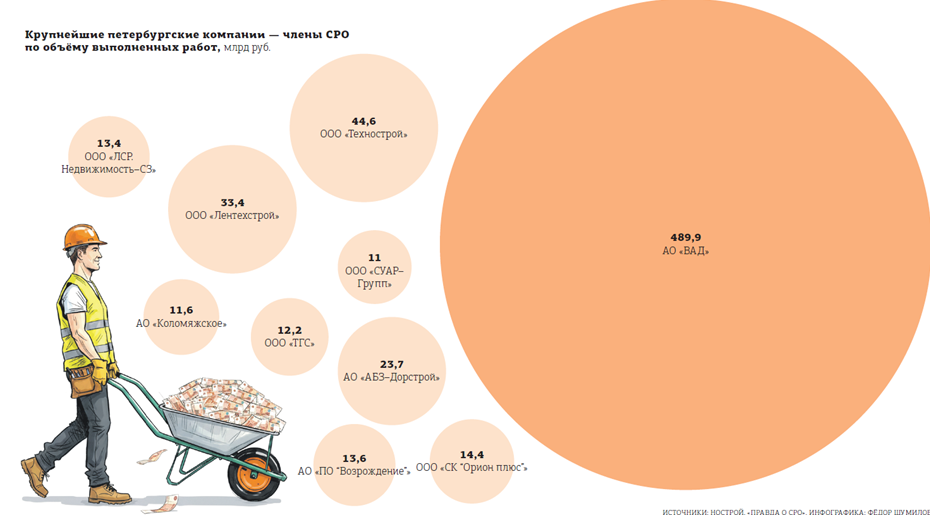 Впрочем, иногда скандалы прорываются в публичное поле. Например, в 2017 году стало известно о хищении средств компенсационных фондов некоторых петербургских СРО. Как сообщали в петербургской прокуратуре, со счетов было выведено более 5,6 млрд рублей. Приговор был вынесен в том числе бывшему главе Северо–Западного управления Ростехнадзора Григорию Слабикову, который должен был контролировать деятельность СРО.
