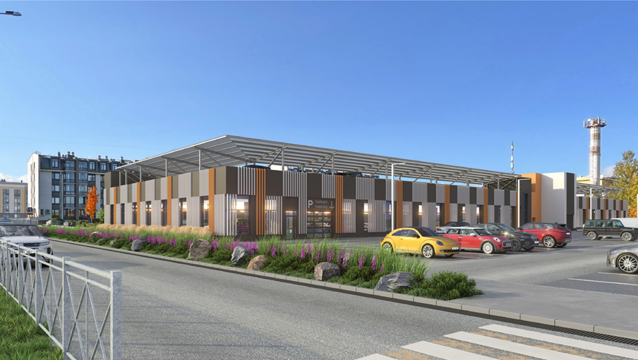 Машино-мест будет 228 — ровно столько же, сколько построят для соседнего паркинга в Пушкине на территории Гуммолосары на пересечении Кедринской и Комсомольской улиц. Положительное заключение на него в КГИОП опубликовали в мае этого года, а в июне КГА согласовал архитектурный облик объекта.