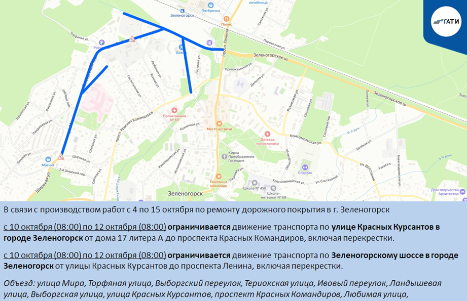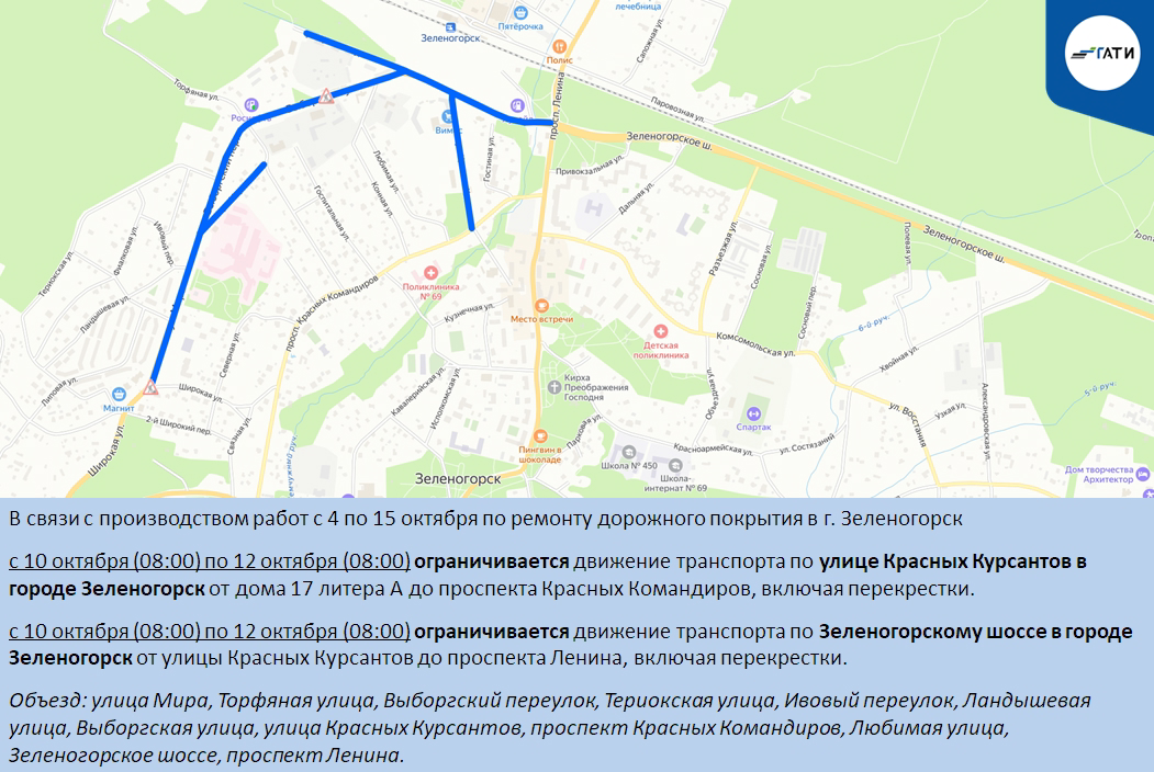Ограничения вводятся и в Курортном районе: в Зеленогорске снова перекрывают улицы из-за ремонта асфальта.