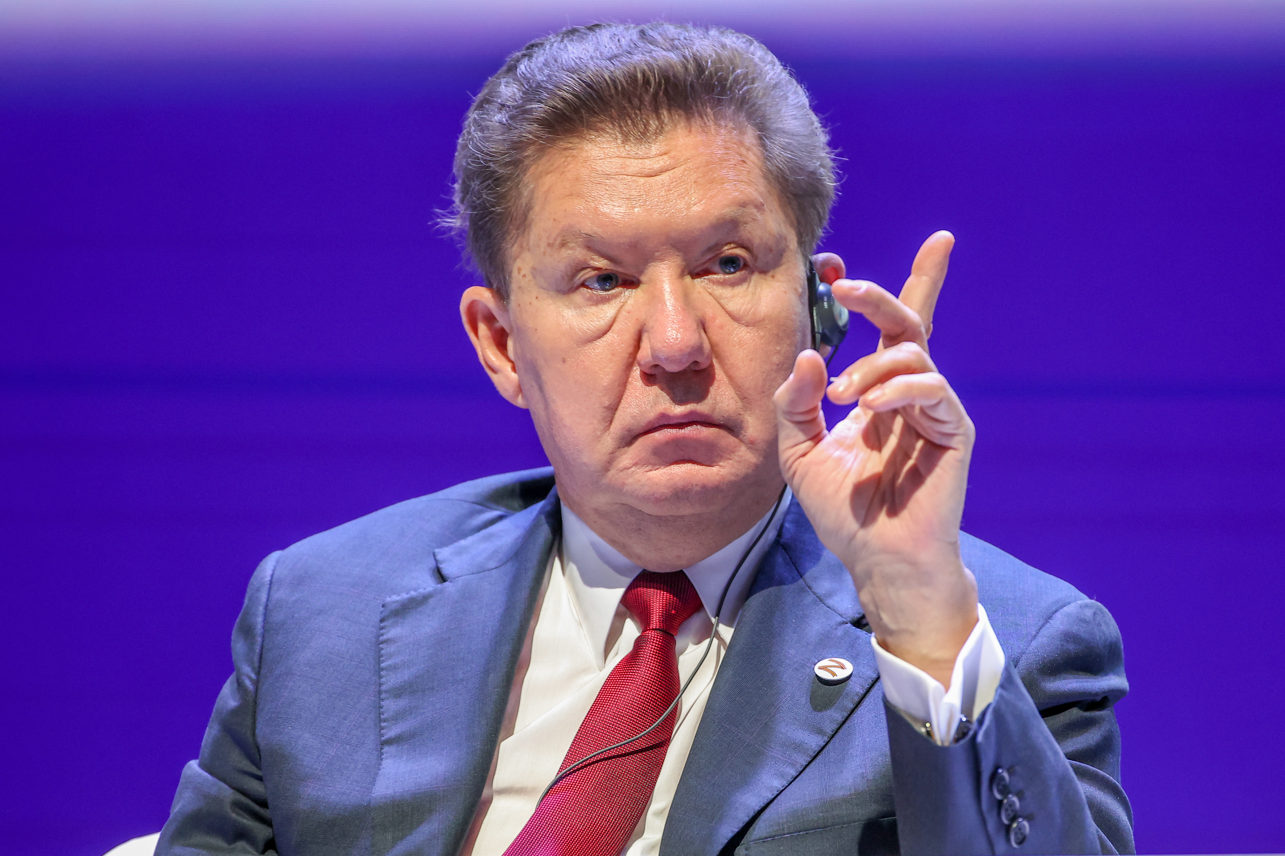 Председатель правления ПАО "Газпром" Алексей Миллер во время пленарного заседания Петербургского международного газового форума "Рынок газа 2025–2035: новые очертания в условиях трансформации"