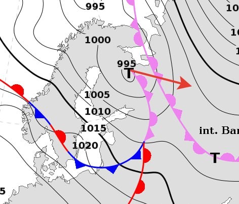 Влияние на регион в субботу окажет циклон, смещающийся через центральные районы Финляндии, принеся дожди и усиление ветра.
