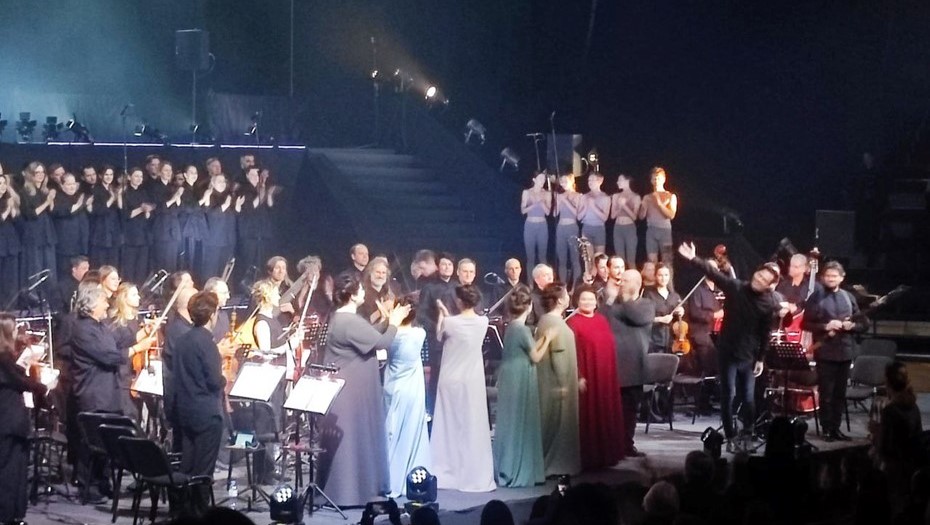 Во время оркестровой интермедии коллектив встал. Иногда эта привычка musicAeterna могла вызывать недоумение консервативной публики, но стоит учесть, что на качество звука влияет в основном акустика площадки и обстановка в зрительном зале. Факт того, что оркестранты для зрелищности иногда встают, никак не влияет на технику и звук, наоборот, в энергичных частях это помогает подчеркнуть характер музыки.