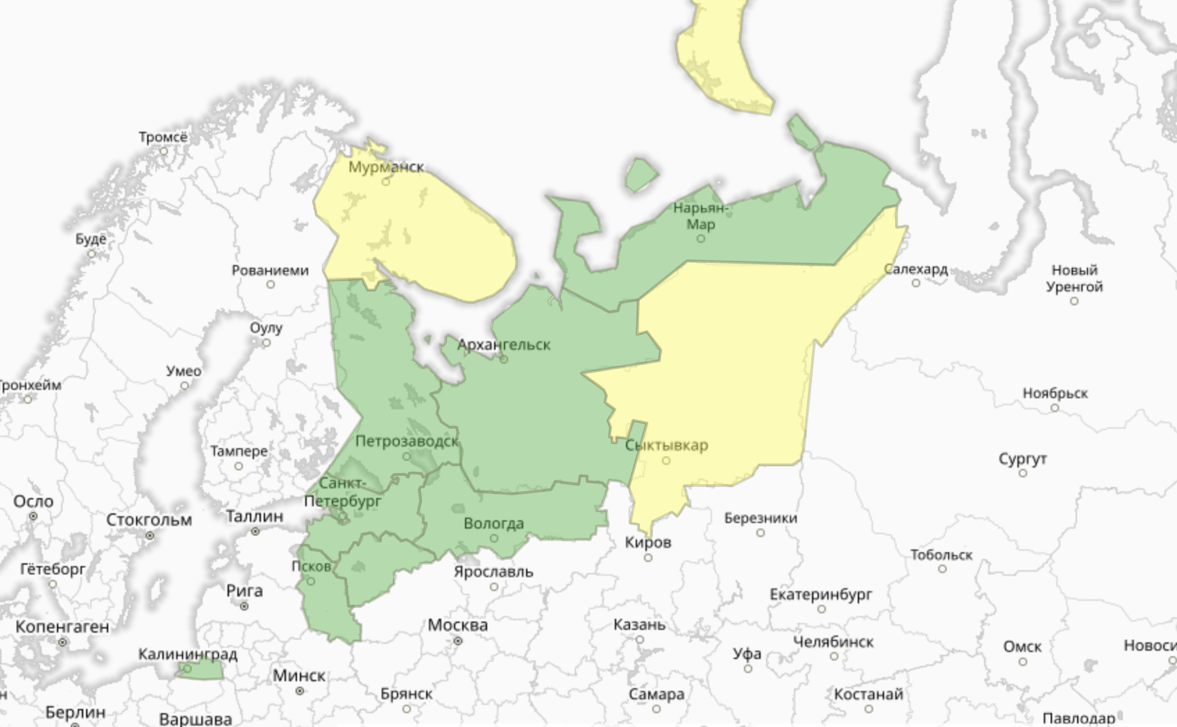 Ранее сообщалось, что первый снег в регионах СЗФО выпадет в выходные 11-12 октября. Дожди с мокрым снегом прогнозировались в Карелии, Коми, Вологодской области.