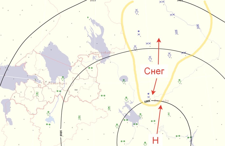 "Циклон только ещё подходит к Вологде, но сегодня днём дойдёт до неё. В его северной шапке осадки в виде снега, даже в самой Вологде снег отмечается. Вместе с восточными воздушными потоками зона осадков прокручивается на территорию Карелии и Ленинградскую область", — передаёт синоптик.