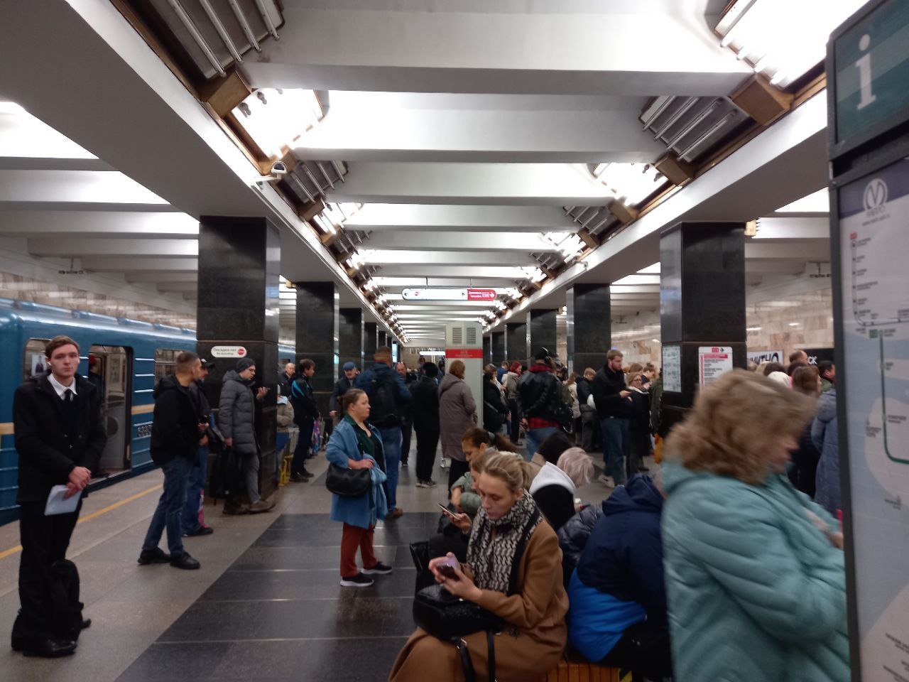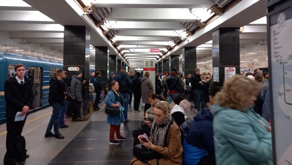 "На станциях коллапс, поезда битком набитые с открытыми дверями стоят вплоть до "техноложки", — рассказывают очевидцы.