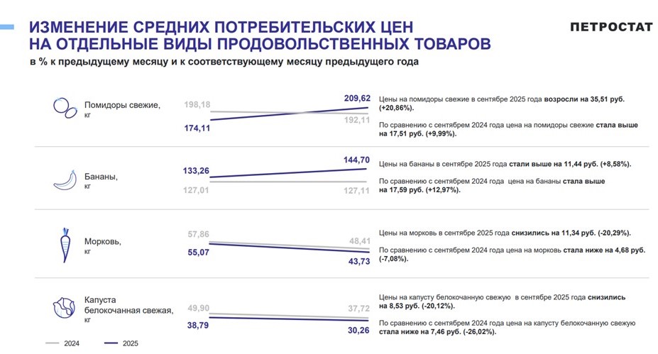 А минимальная продуктовая корзина на человека в Петербурге выросла до 8,6 тыс. рубля в месяц. В среднем подорожание по России с начала 2025 года составило 1,6%.
