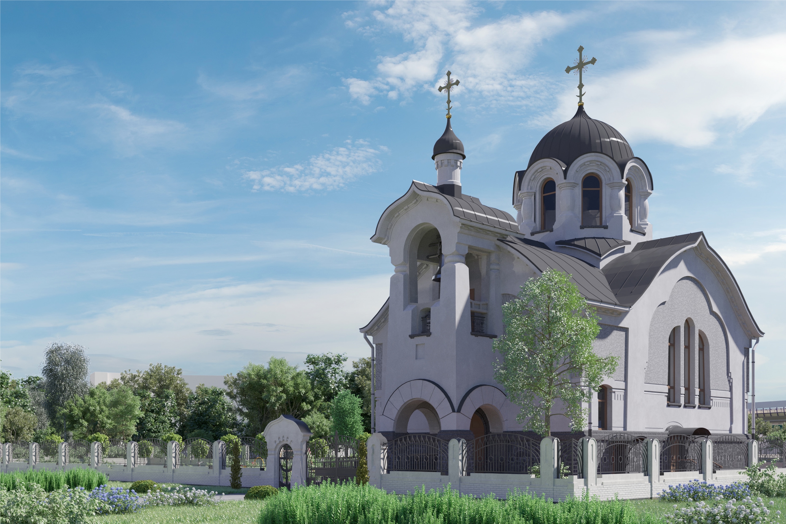 Объём храма формируется из двух частей: основного храма, одноглавого, с завершением в виде купола шлемовидной формы, и пристроенной открытой звонницы с малой главкой луковичной формы, говорится в сообщении.