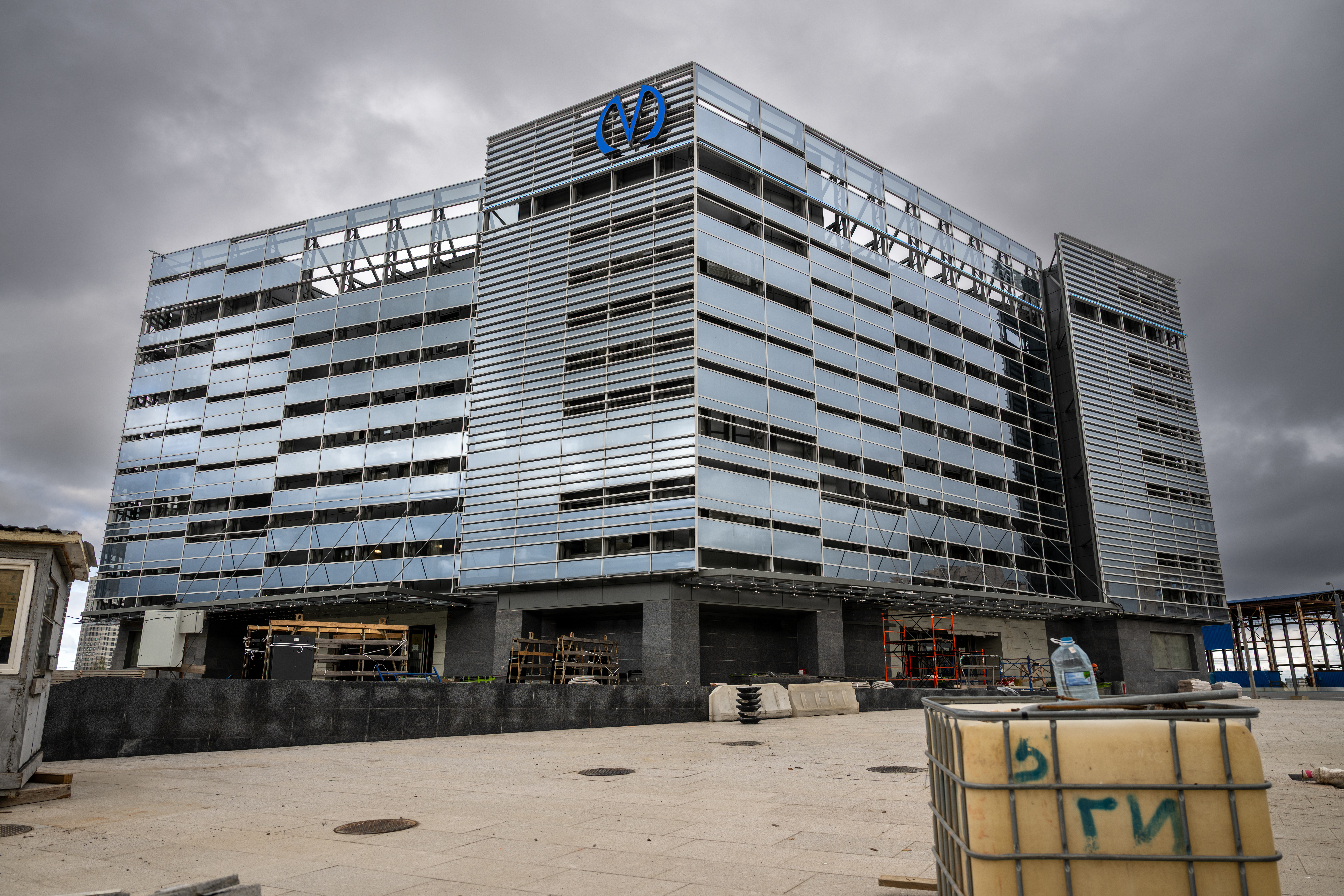 Тем временем у входа в вестибюль "Юго-Западной" уже укладывают газон. Работы ведутся со стороны проспекта Маршала Жукова, у входа в вестибюль.