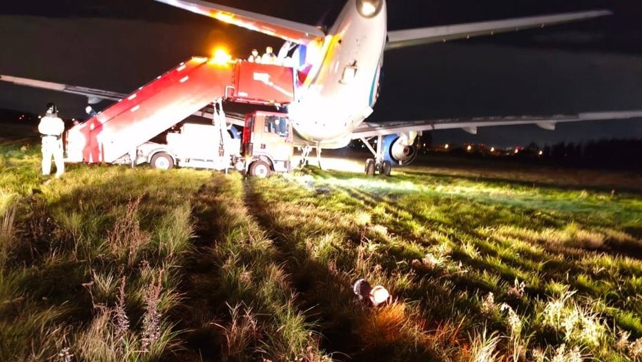 После выработки топлива самолёт совершил посадку. На этапе пробега воздушное судно отклонилось от оси взлётно-посадочной полосы и незначительно выкатилось на грунт.