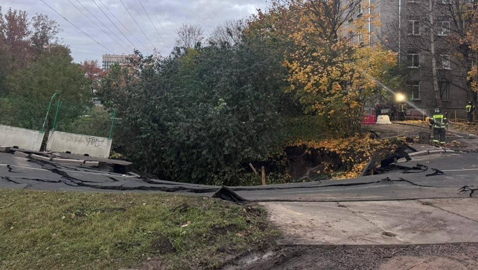 ЧП произошло в районе шахты 120А Выборгского тоннельного коллектора и сразу приковало к себе общественное внимание. Дело дошло до эвакуации жителей дома 29/20 по 1-му Муринскому проспекту. Они размещены в школе №104 (ул. Харченко, 27) и обеспечены всем необходимым. Глубина образовавшейся ямы разными источниками оценивается от 3 до 4 метров.