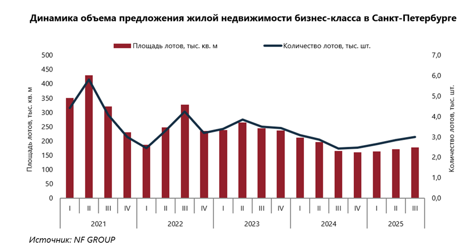 "Более чем через год после завершения действия ипотеки с господдержкой, спрос на жилье бизнес-класса в Петербурге сохраняется на высоком уровне. Активность покупателей поддерживается в том числе за счет вывода в продажу нового предложения: так, в первые девять месяцев 2025 года почти половина сделок (48% общего количества) пришлась на жилые комплексы, стартовавшие в этом году", — сообщила аналитик-консультант NF Group Ксения Федорова.
