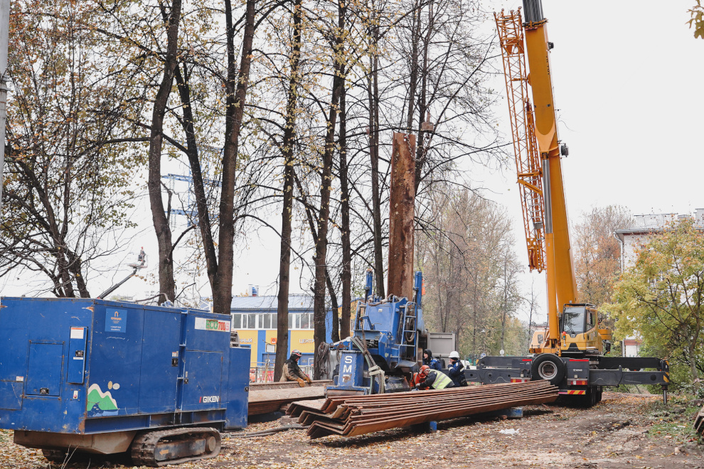 Специалисты продолжают обустройство шпунтового ограждения для стабилизации грунта. Работы идут круглосуточно. В работе задействовано более 30 единиц спецтехники.
