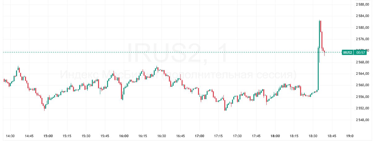 Индекс Мосбиржи вырос до 2582,67 пункта после слов президента РФ Владимира Путина о возможном саммите в Будапеште, по данным TradingView.