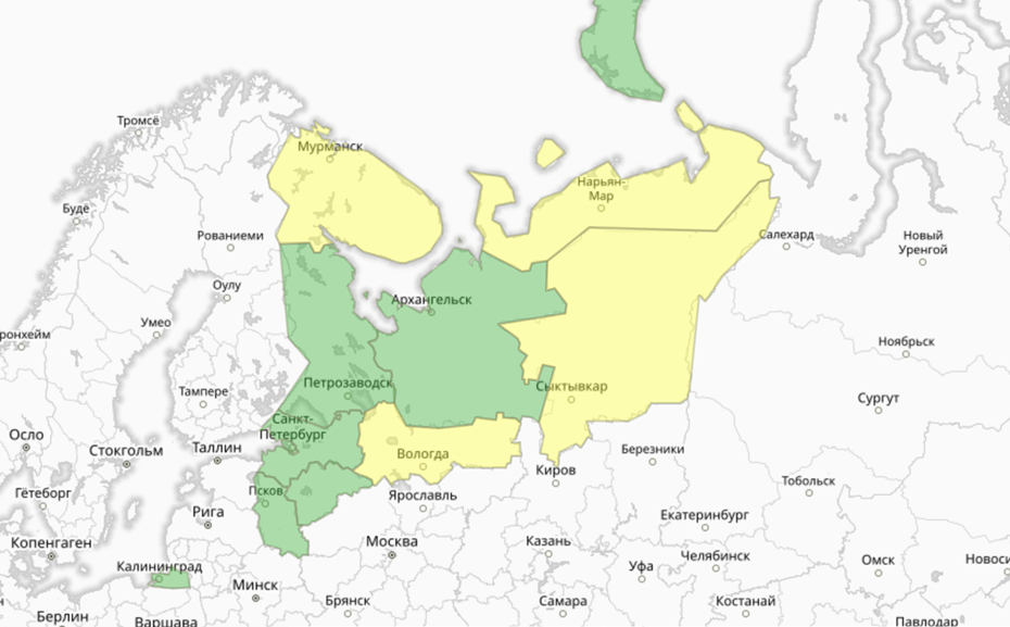 Прогностическая карта предупреждений для СЗФО