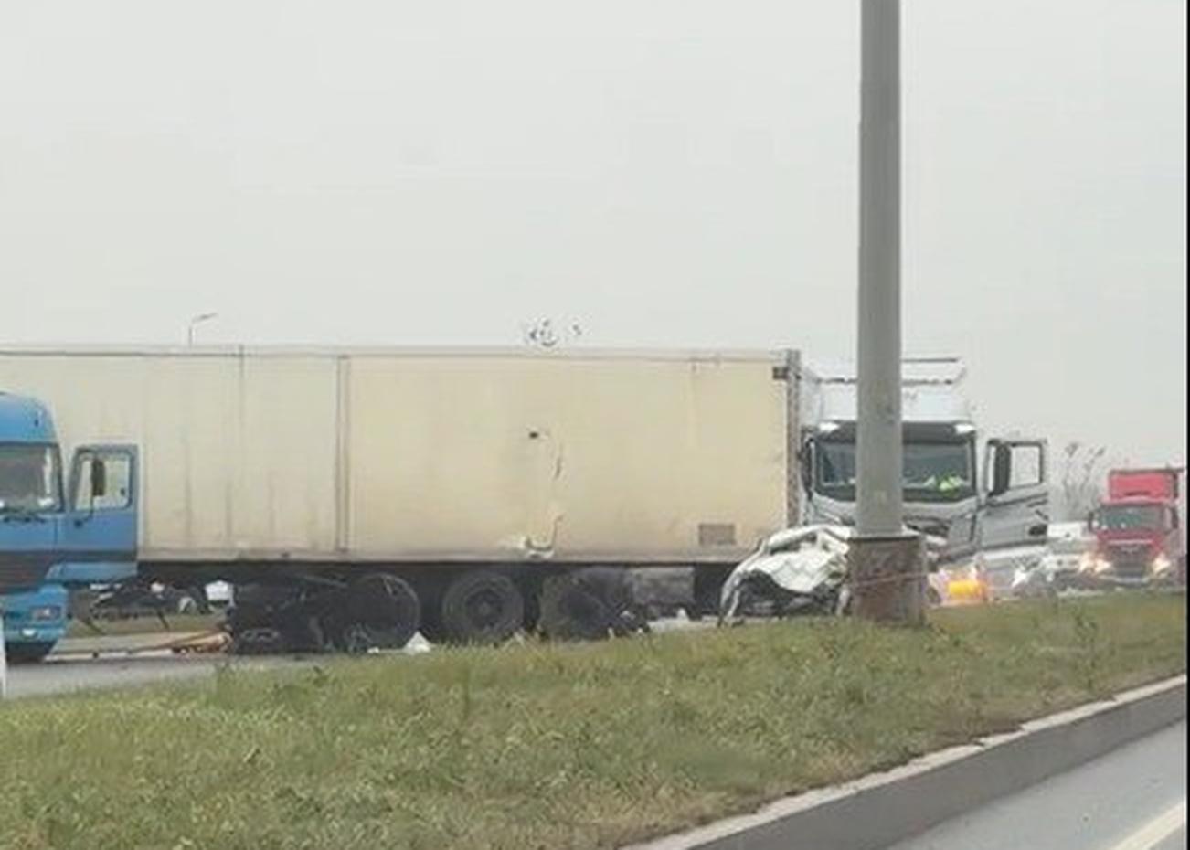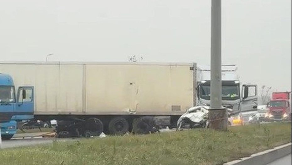 По предварительным данным, на дороге столкнулись две фуры и легковая машина.