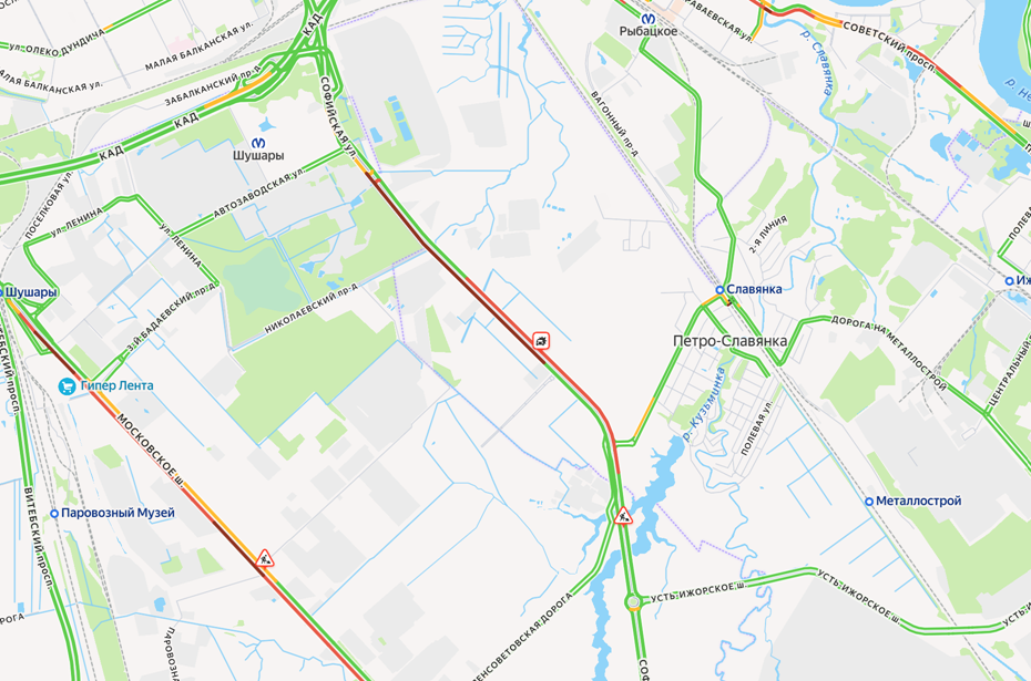 Серьёзное ДТП собрало масштабную пробку на Софийской улице в Петербурге, следует из данных "Яндекс карт".