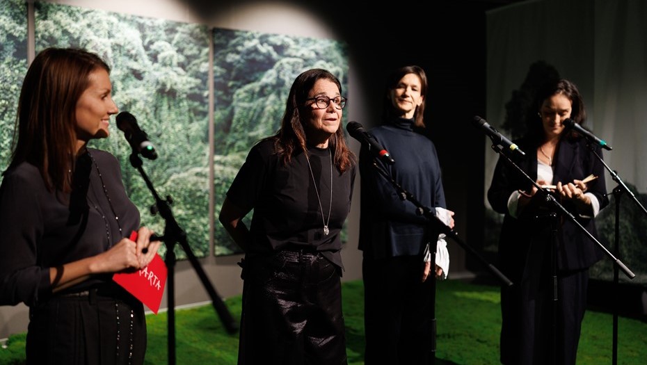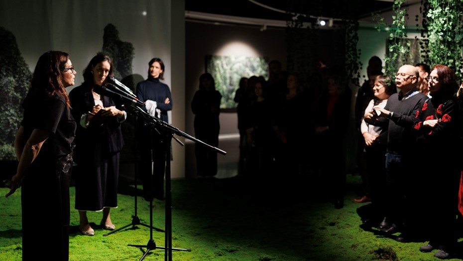 Анхела Копелло приветствует зрителей на открытии выставки в Петербурге