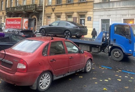 С платных парковок Петербурга начали эвакуировать незаконно размещённые автомобили, кадры с рейдом опубликовали в Комтрансе.