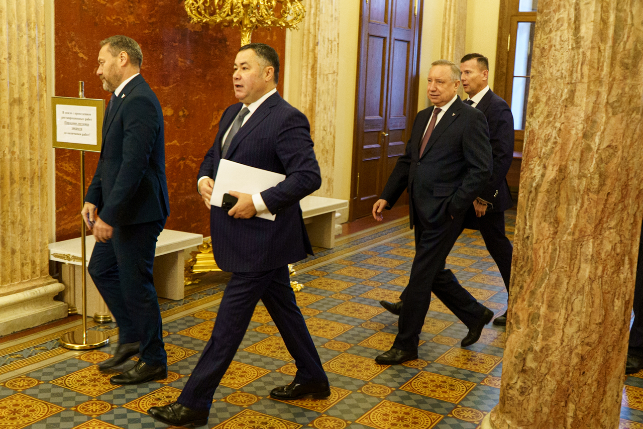 Как отмечает "Закс.ру", Беглов около пяти минут ждал полпреда у Мариинского дворца. Вместе с ним Руденю ожидал спикер петербургского парламента Александр Бельский.