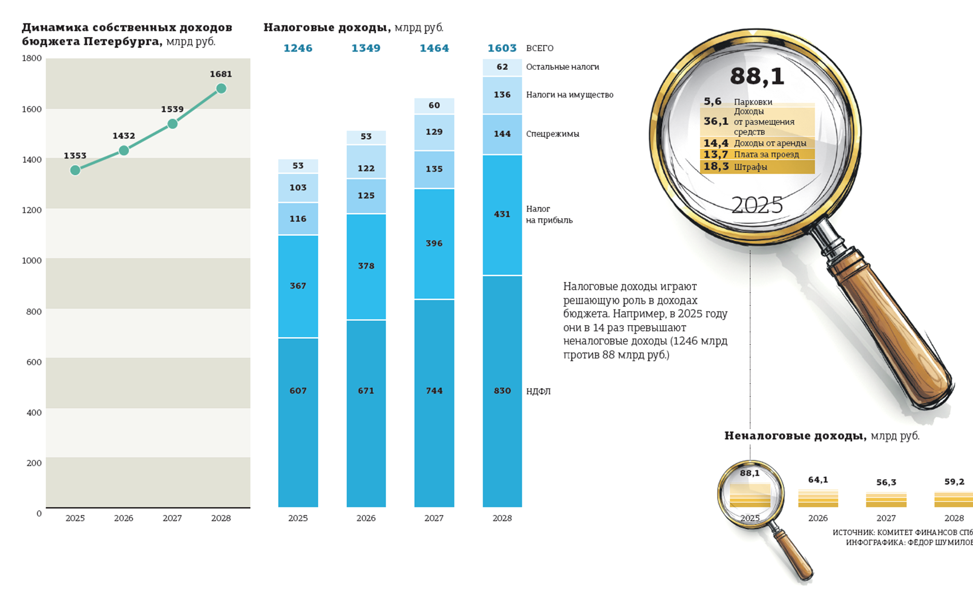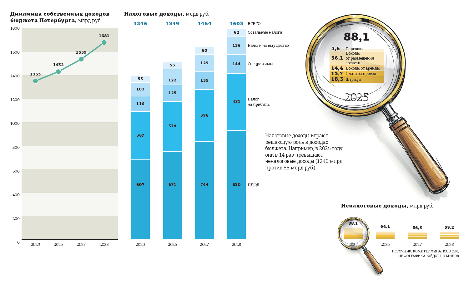 Сегодня депутаты планируют принять в первом чтении бюджет Петербурга на 2026 год и плановый период 2027–2028 годов. Согласно внесённому проекту бюджета, город должен заработать в следующем году 1,45 трлн рублей. Планку в 1,5 трлн планируется перешагнуть в 2027–м.