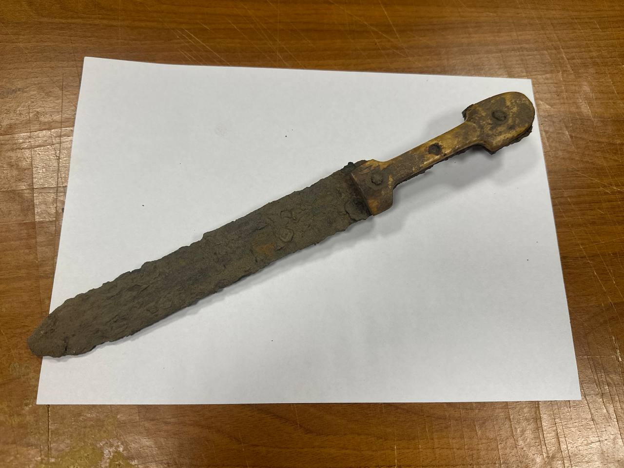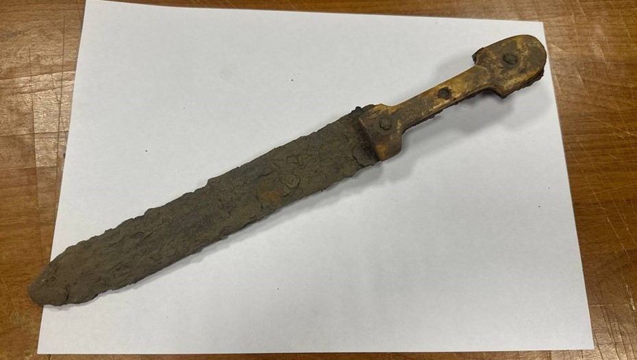 Оружие было выкопано на метровом уровне земляного вала. Предварительно кинжал идентифицировали, как оружие XIX века, своей формой он похож на кинжалы типа "кама", использовавшиеся кавказскими горцами.