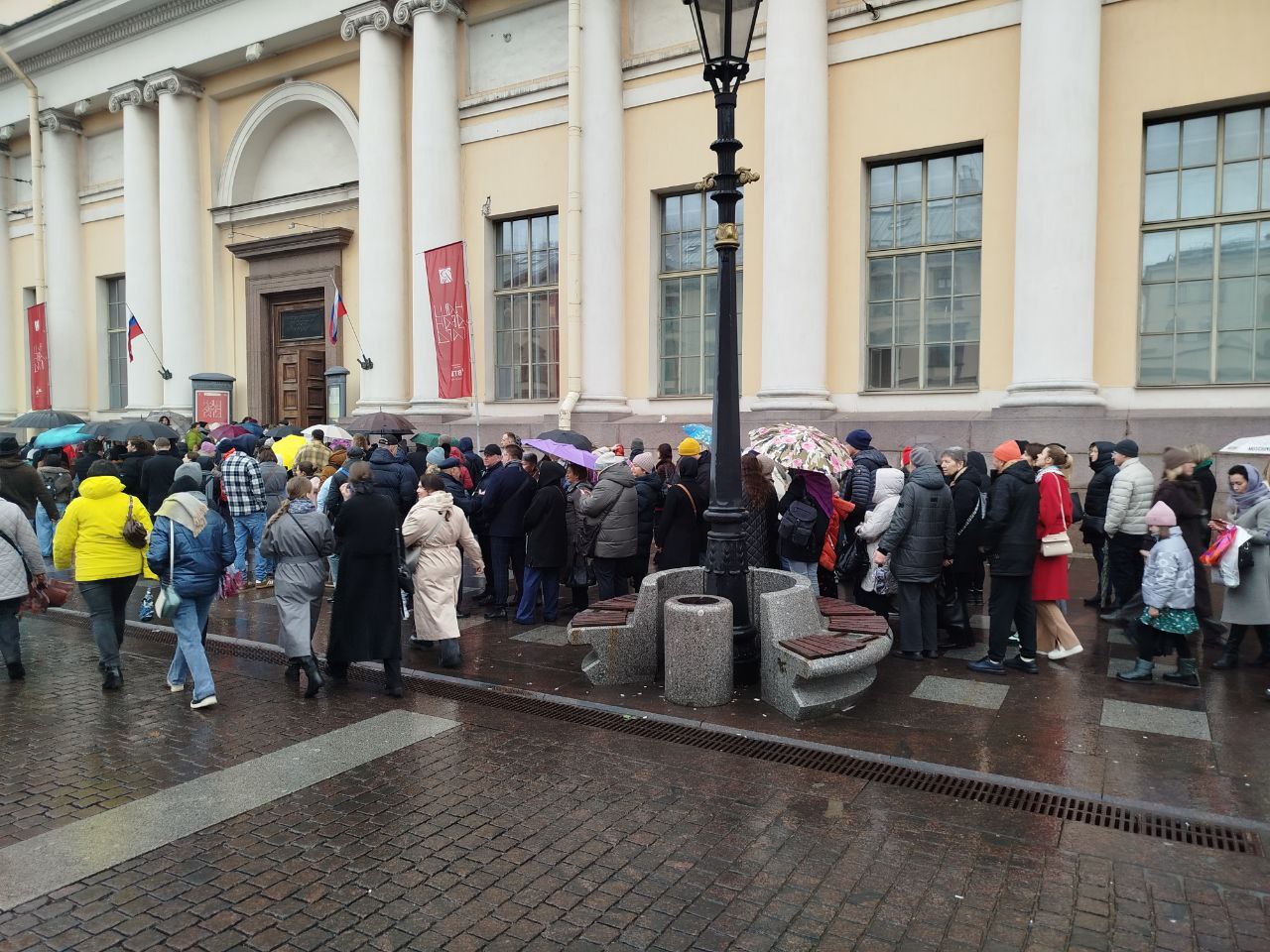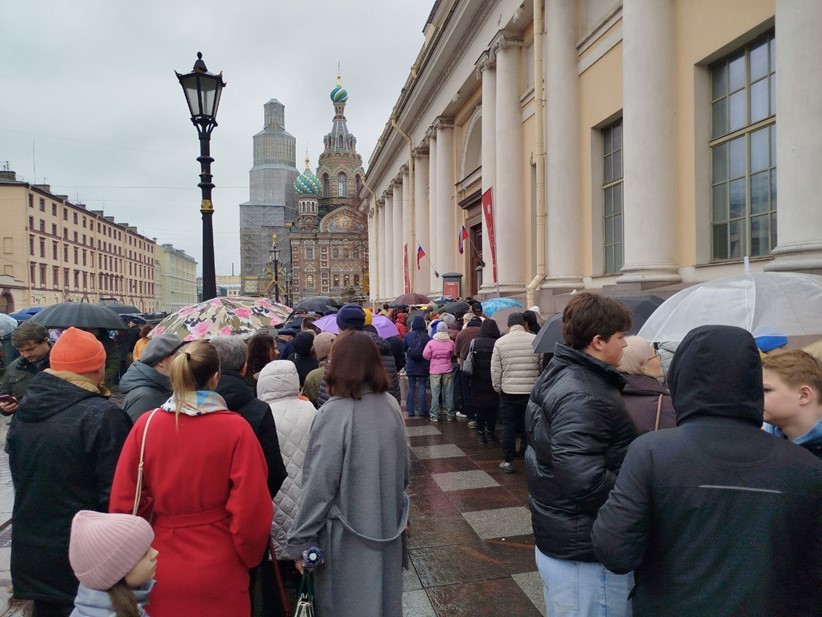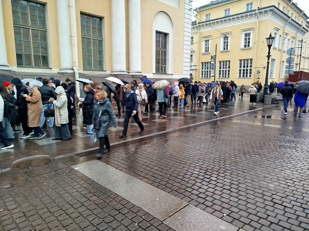 В конце октября у входа в Государственный Эрмитаж выстроилась очередь, которая растянулась до Александровской колонны. Причиной стали технические неполадки, зафиксированные в одном из аппаратов системы досмотра.