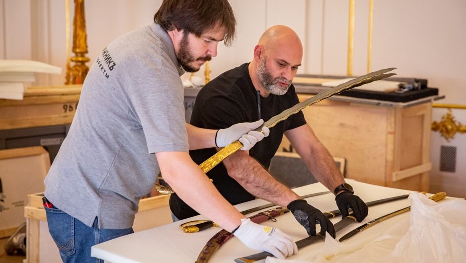 "114 предметов из музейного фонда "Оружие" и коллекции предметов с содержанием драгоценных металлов и драгоценных камней готовятся к отправке в Москву. Шедевры царскосельского собрания можно будет увидеть на выставке из серии "Сокровища императорских резиденций", — пояснили специалисты.