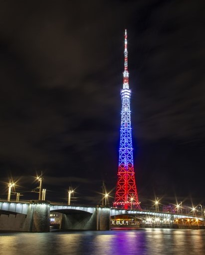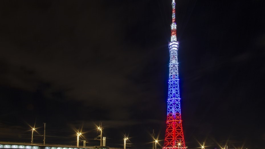 Иллюминация будет работать с 16:55 4 ноября до 8:25 утра 5 ноября. Телебашня предстанет в бело-сине-красной подсветке.