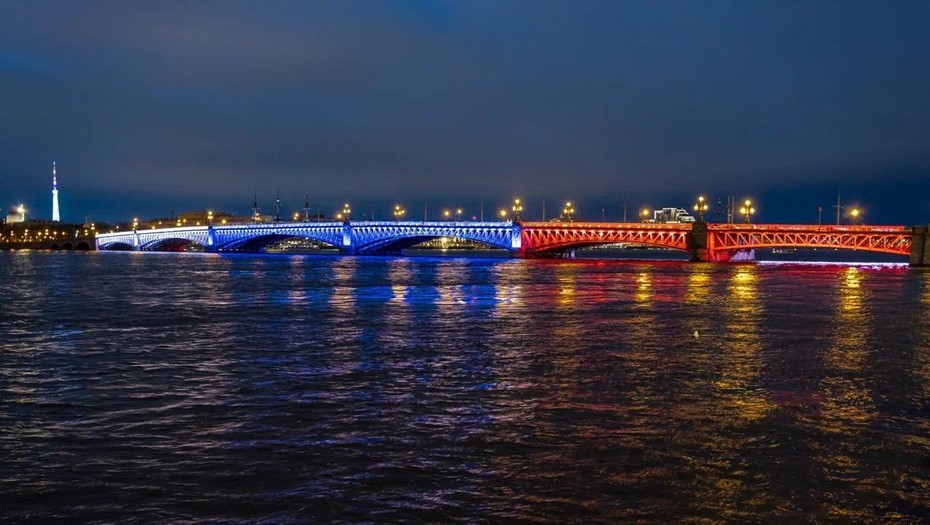 В Петербурге 4 ноября телебашня и три городских моста будут подсвечены в цветах российского флага в честь Дня народного единства, сообщил губернатор города Александр Беглов.