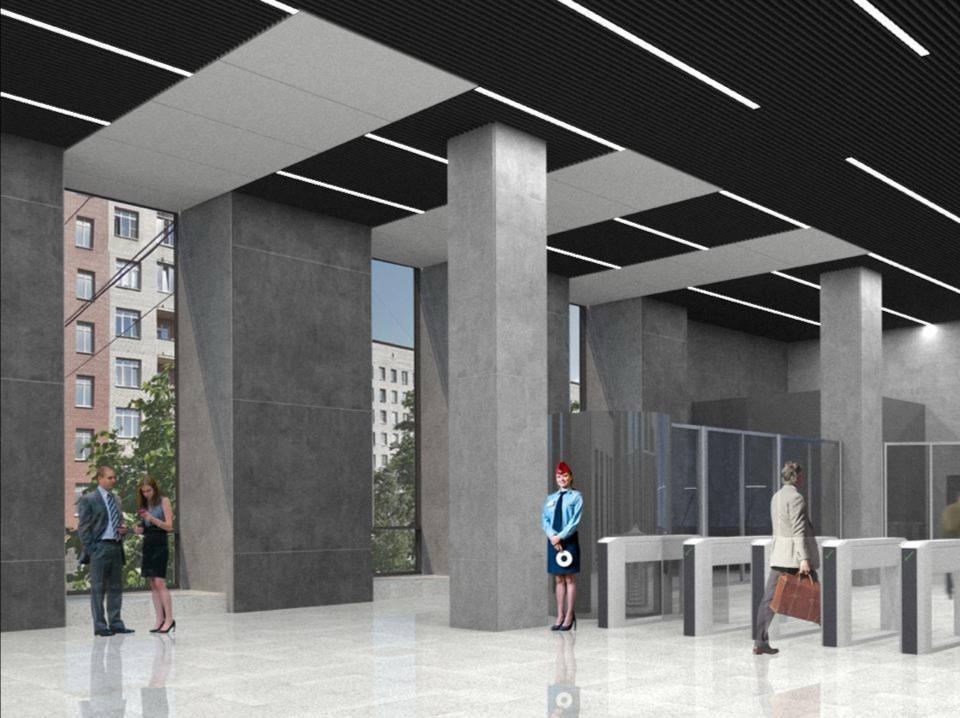 Рендер, будущий облик станции "Путиловская" Красносельско-Калининской линии метро в Петербурге.