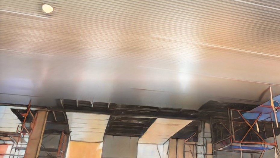 "Завершается монтаж серых алюминиевых сотовых панелей на стены зала. Также завершена установка подсистемы и продолжается монтаж подвесного потолка из реек кубической формы, так называемого "кубота", — поделились метростроители.