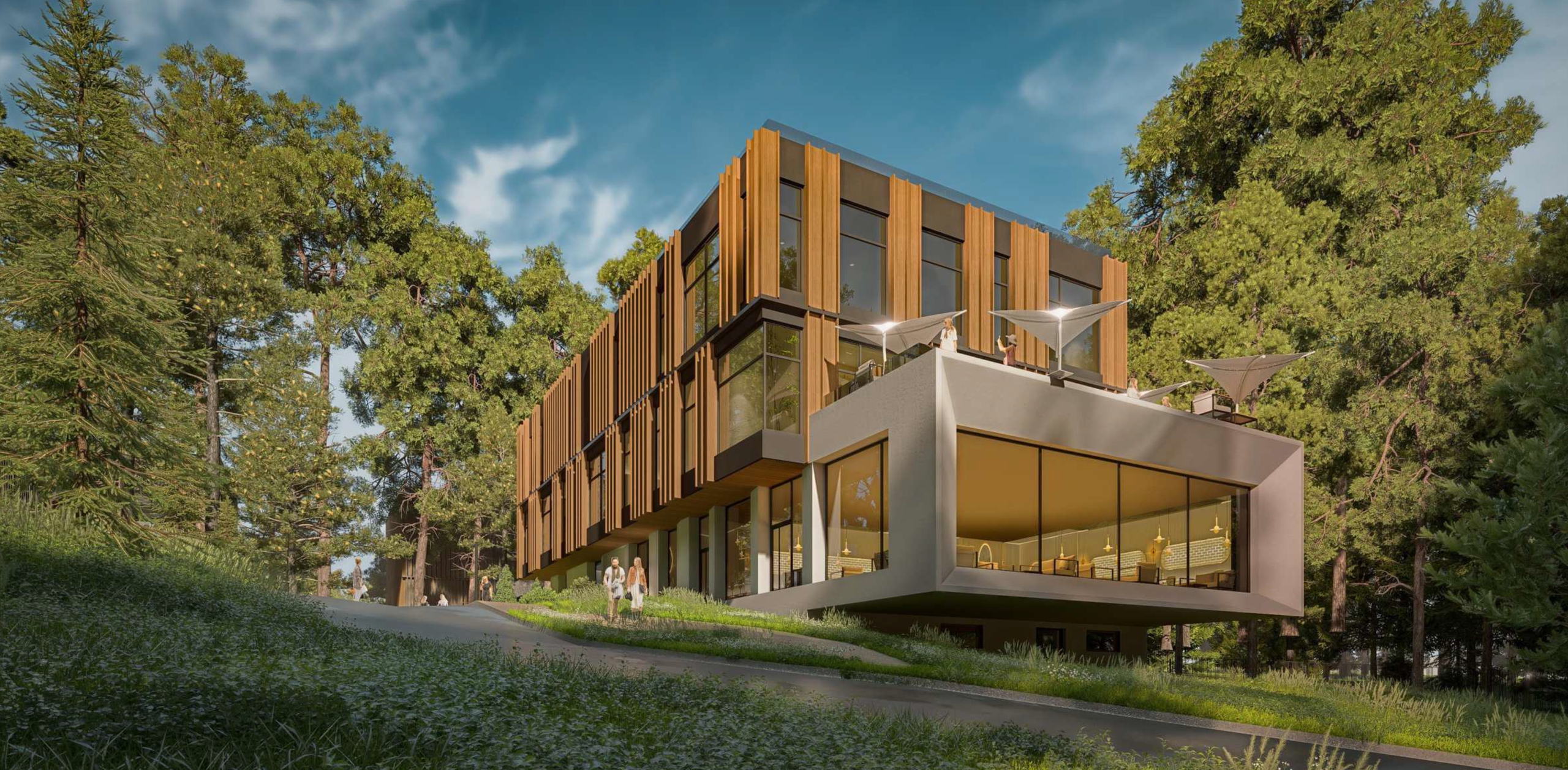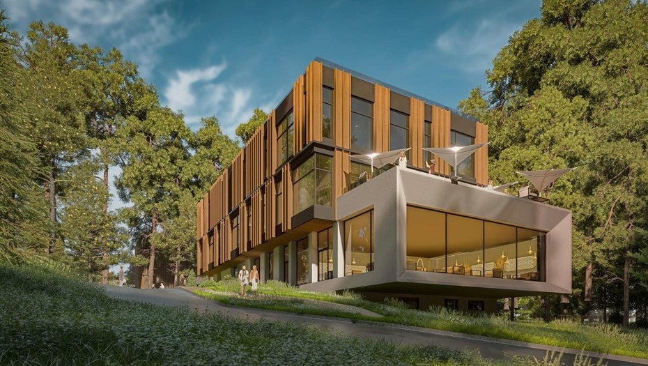 В сентябре градсовет одобрил облик проекта ещё одного санаторного комплекса в Солнечном — на Лесной улице, 24, лит. Б, на территории недостроенного пионерлагеря "Красный Выборжец". Проект также разработан ООО "Архитектурное бюро "А.Лен" по заказу ООО "Интеллект Хаус". Основой концепции стало создание пространства, связанного с лесной природой. Его разделили на "острова" и "реку".