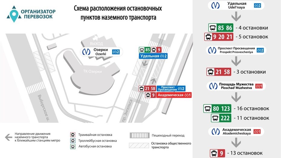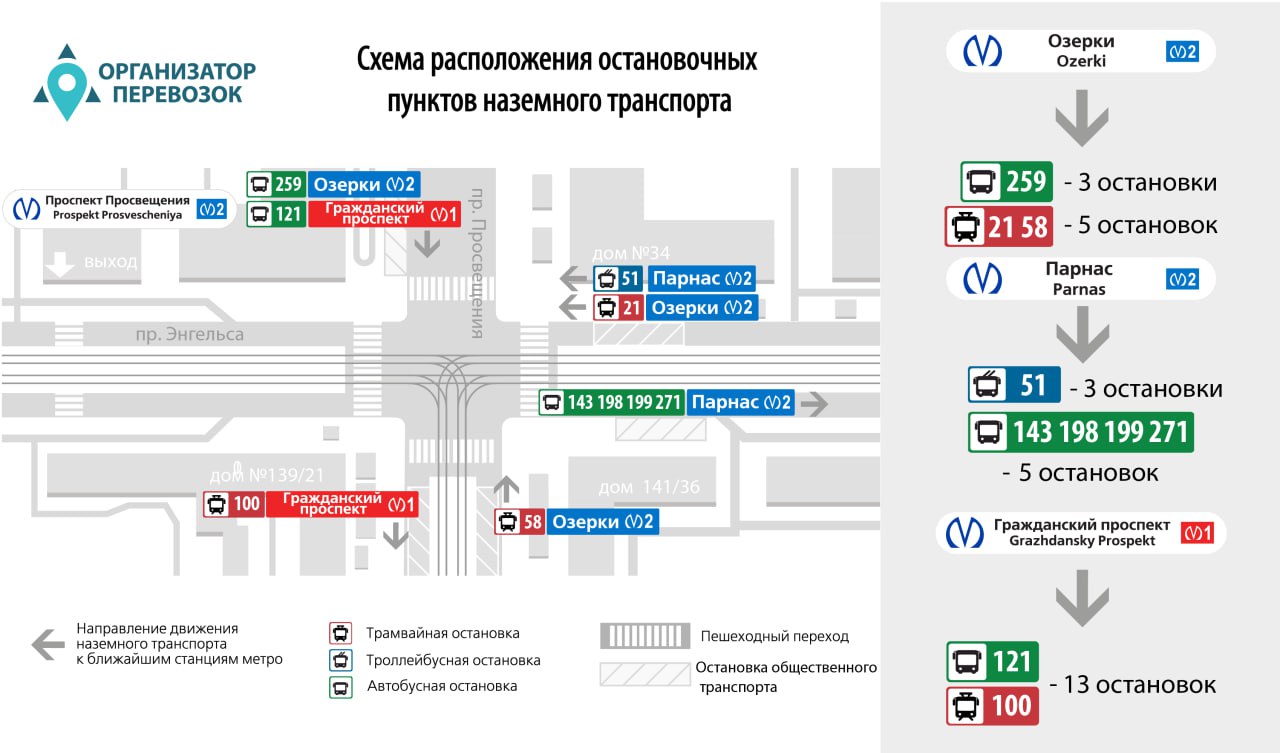 Движение поездов от станции "Парнас" до станции "Озерки" временно приостановлено. Саму станцию "Озерки" закрыли на вход в 10:36. Вместе с тем станцию "Проспект просвещения", расположенную между станциями "Озерки" и "Парнас", также закрыли.